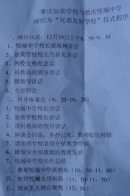 away) for ceremony to mark beginning of sister-school arrangement (in Chinese